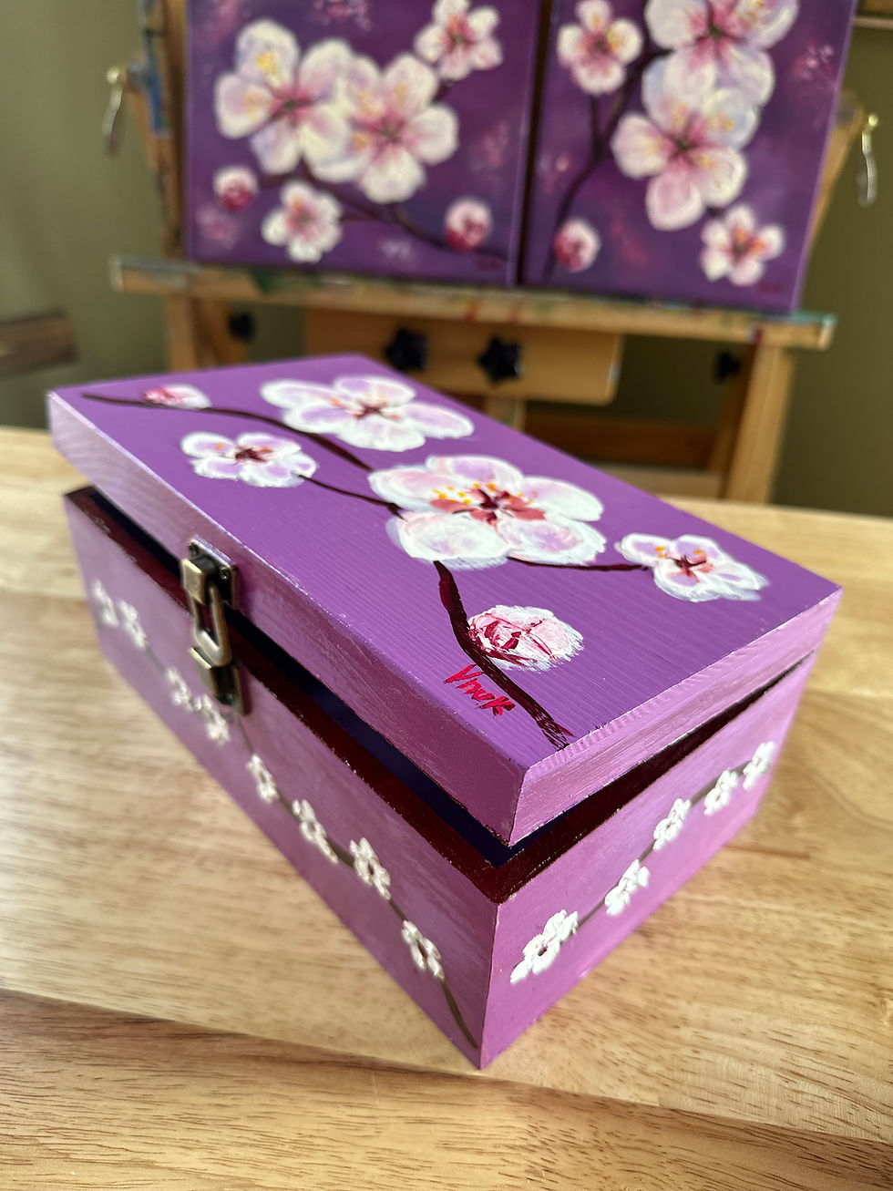 HAND PAINTED WOOD KEEPSAKE CHERRY BLOSSOM BOXES
